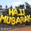 Elegant gold “Hajj Mubarak” cake topper perfect for celebrating a blessed Hajj occasion. -
